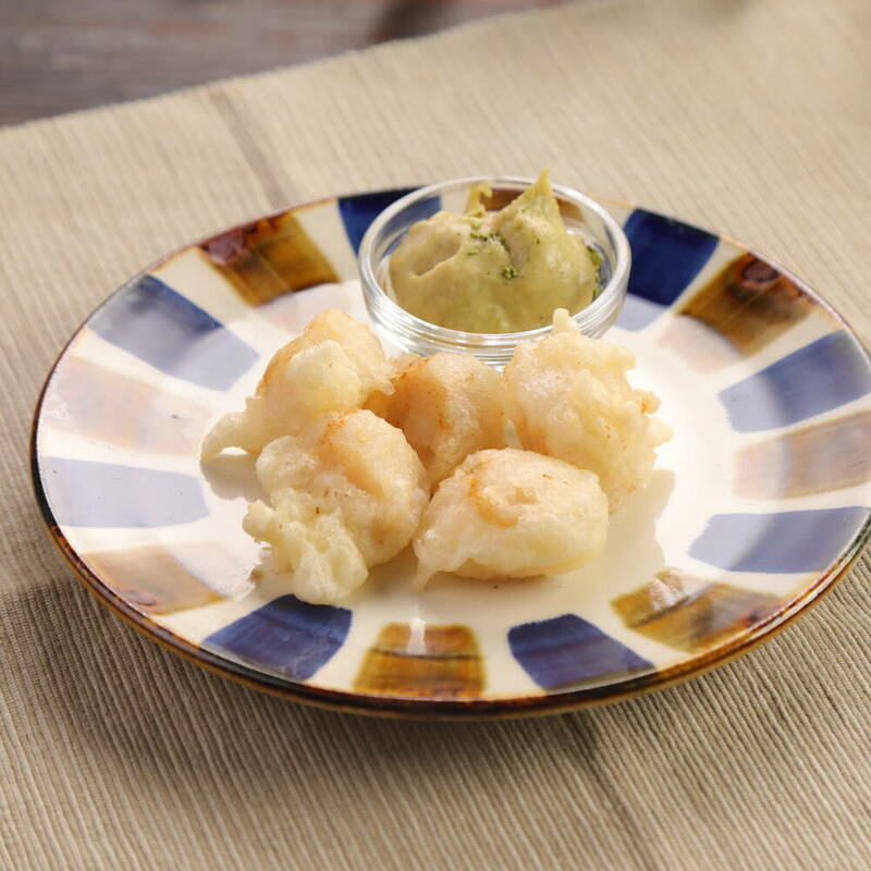 【A】を混ぜ合わせて<1>をくぐらせ、中温に温めたサラダ油で、衣がきつね色になるまであげる。