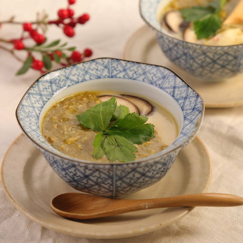 小鍋に蟹味噌を入れて、火にかけ、混ぜ合わせた【B】を回しかけ、とろみをつける。