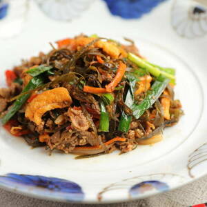 昆布は20分ほど水で戻し、ぬめりを洗い流して水気を切って、細切りにする。油揚げは1cm幅に切り、湯通しする。