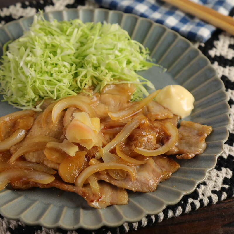 器にキャベツを盛り、生姜焼きを乗せ、タレをかける。残りの<2>を上に添える。マヨネーズを添える。