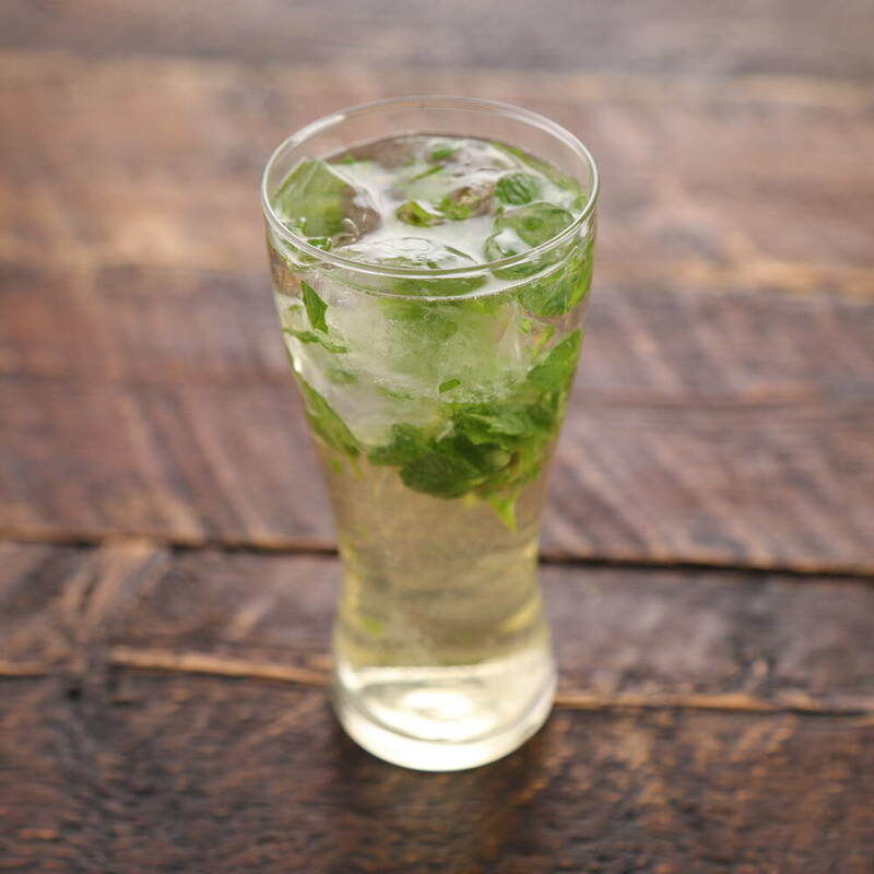<1>に氷を入れ、ジャスミン茶とウィスキー、炭酸水を注ぎ軽くステアする。